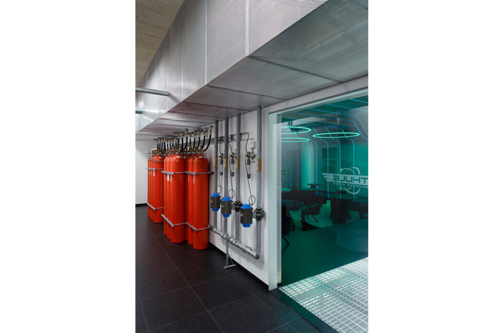 – Bahnhof är ett av få företag som vill göra något fint och spännande av en serverhall. Vi valde att blanda science fiction och det moderna med det mer industriella för att behålla lokalens stil. Det fanns mycket rör och annat i taket och det behövde vi gömma undan, men samtidigt ville vi utnyttja varje centimeter av lokalen.