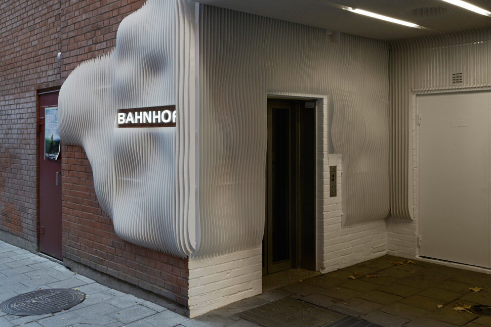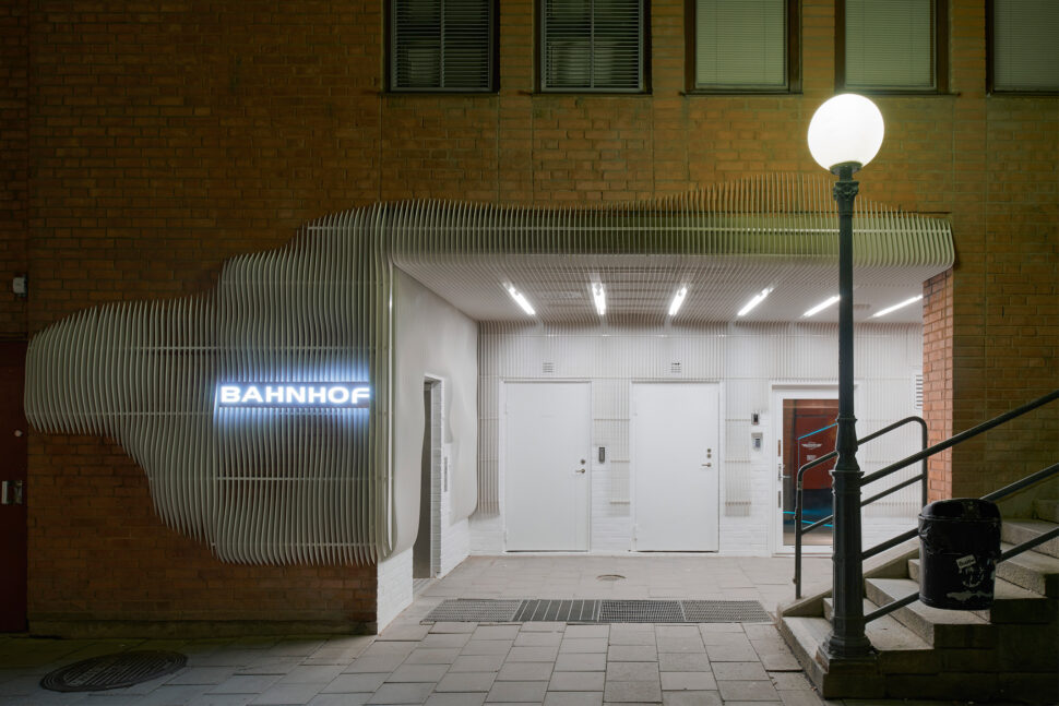 – Det var en riktigt trist utsida. Det var mörkt och platsen var avskärmad och därför hade det blivit ett tillhåll. Vi har gjort hela platsen ljusare och skapat en annan atmosfär genom att belysa lameller. Själva skylten som visar att det är Bahnhofs lokal är ganska anonym.