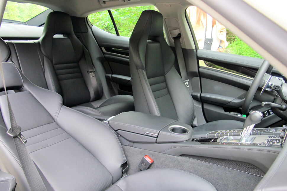Den yttre designen har fått sig en lätt ansiktslyftning. Instrumenteringen är lika elegant som tidigare och här sitter man två fram och två bak. Då Panamera är en halvkombi så sväljer den, trots batteripackens 124 kilo, ett bagage på 335 liter eller 1 153 liter – utan baksätespassagerare.