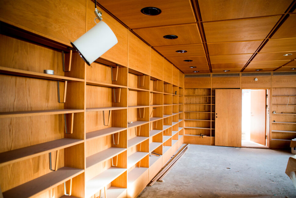– Bokhyllorna levereras hit i färdiga sektioner med både belysning och eluttag förinstallerade. Till dem har vi anlitat en underentreprenör för att installera belysningen i dem, säger Anders.