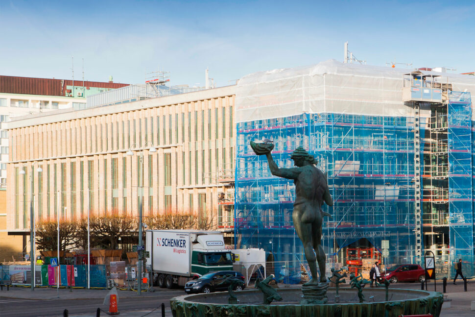 Götaplatsen i Göteborg är en av Sverige mest genomtänkta arkitektoniska miljöer. Här finns konstmuseum, stadsteater, bibliotek och andra byggnader grupperade kring den fina Poseidon-fontänen av Carl Milles. Stadsbiblioteket – en av byggnaderna här – genomgår just nu en genomgripande förnyelse och tillbyggnad. Bravida svarar för elinstallationerna i ett projekt som kräver kulturella hänsyn samtidigt som ny och energieffektivare elteknik tas i bruk.