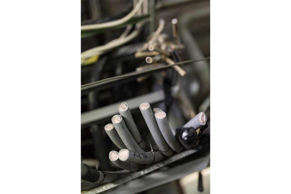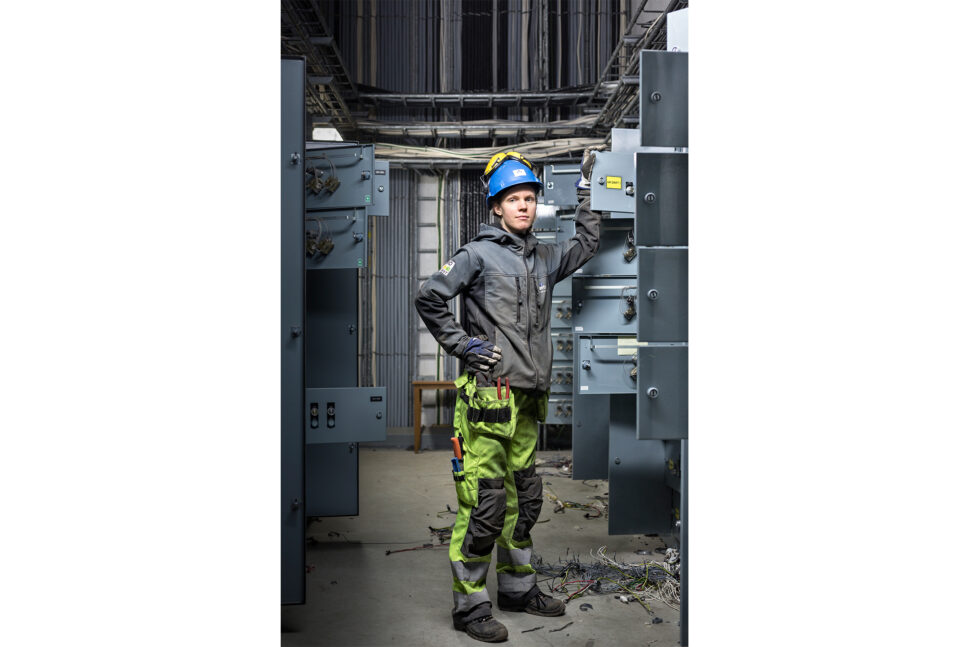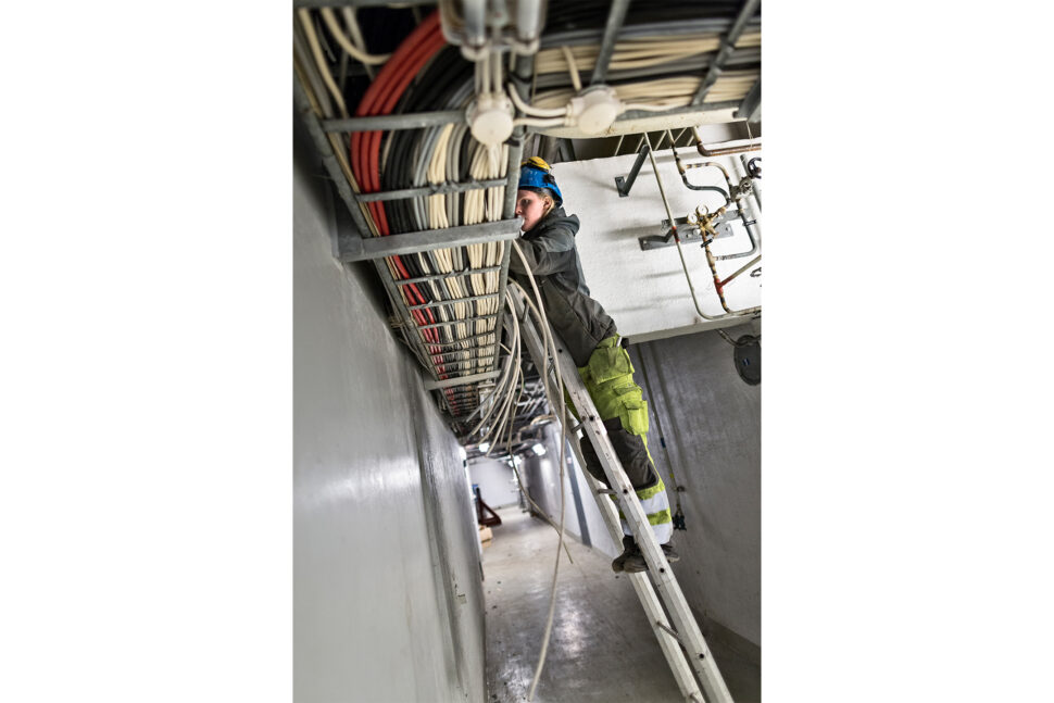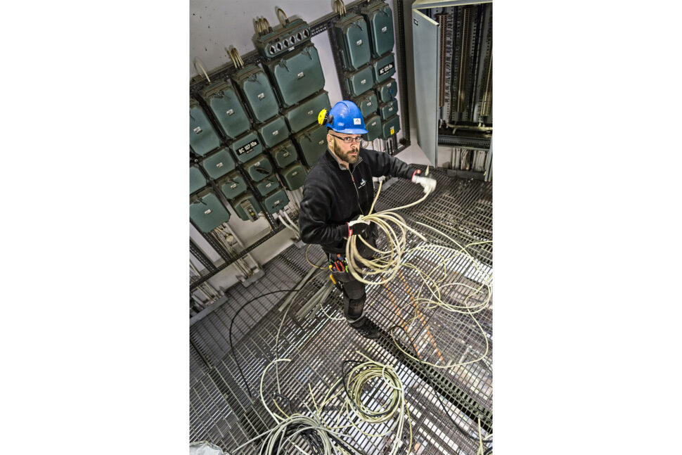De drar, klipper av buntband och sliter. Kablar och ledningar ska ner från kabelstegarna som löper genom rum efter rum i Marvikens övergivna kraftverk. Erik Nyholm och Ida Weber på AppTek är ute på ett stort rivningsjobb. Kanske finns här 400 rum med kablar på stegar, kablar längs väggarna, ledningar och kopplingsskåp i mängd.