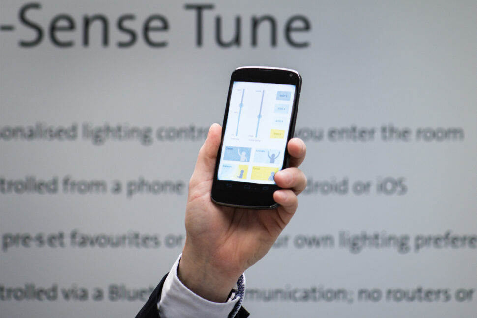 Det riktigt smarta är sedan att armaturen kommer ihåg de olika användarna, kopplat till de inställningar de gjort i sin telefon, och anpassar ljusstyrka och färgtemperatur till dem. Vi kommer lansera den armaturen under nästa år.