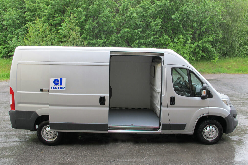 Genom de dubbla bakdörrarna är maximal lastlängd 370 centimeter i testbilen eller 407 cm i den största versionen och om jag mätt rätt 187 cm i lastbredd. En finess med pneumatisk fjädring bak medger en variation på sju centimeters markfrigång samtidigt som bilen hela tiden är i våg med ett plant lastgolv oavsett hur du lastat. Att lasta genom den högra skjutdörren som är standard går galant eftersom den kan öppnas 125 cm. Men där får Jumper stryk av nya Ford Transit som öppnar 130 cm.