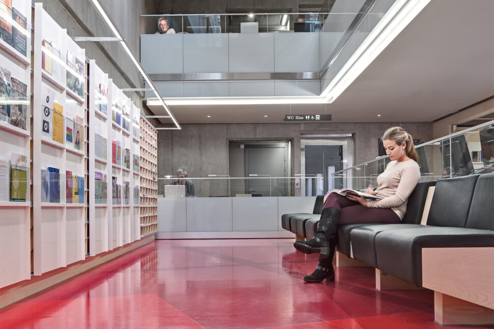 • En högpresterande LED-armatur från Vode användes för bokhyllorna.