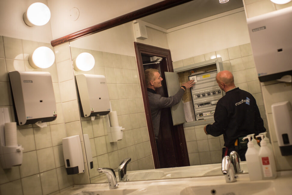 Benny Eriksson är den elektriker som varit elarbetsansvarig. Han berättar att mycket av det som installerades 1908 placerades dolt och finurligt inbyggt.