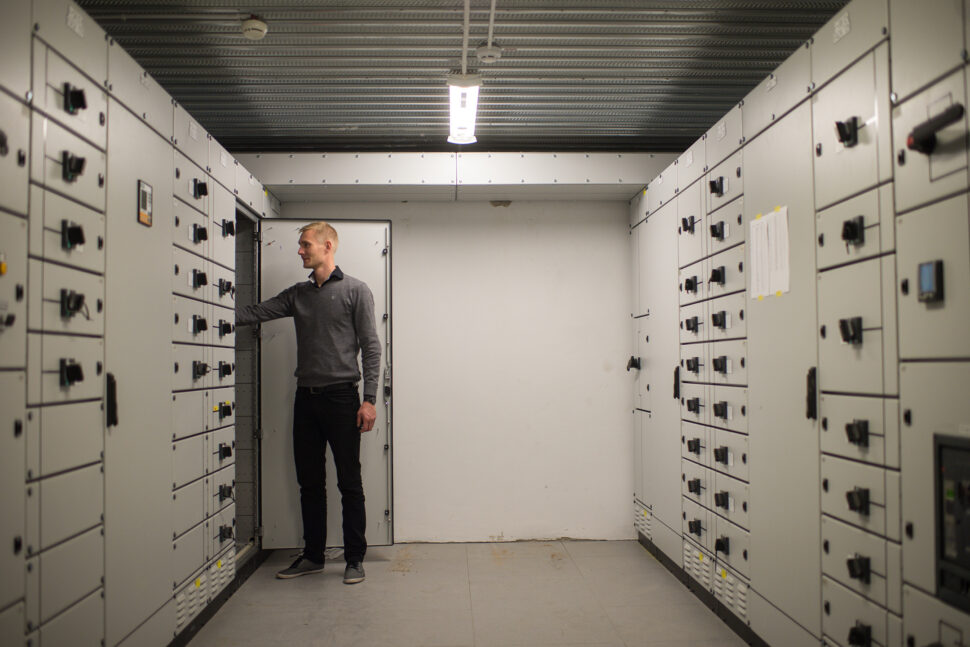 Mikael berättar att det gamla ställverket i källaren fick köras parallellt med det nya under en period för att successivt koppla över och samtidigt klara nya och högre belastningar.