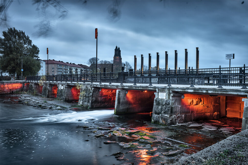 Även här är det ÅF Lighting, med Kai Piippo i spetsen, som ansvarar för ljusdesignen. Tanken är att framhäva Järnvägsbrons arkitektur med en arkitektonisk ljussättning, och att skapa en interaktion mellan människans rörelse och upplevelsen av vattnet på platsen, förklarar Kai Piippo.