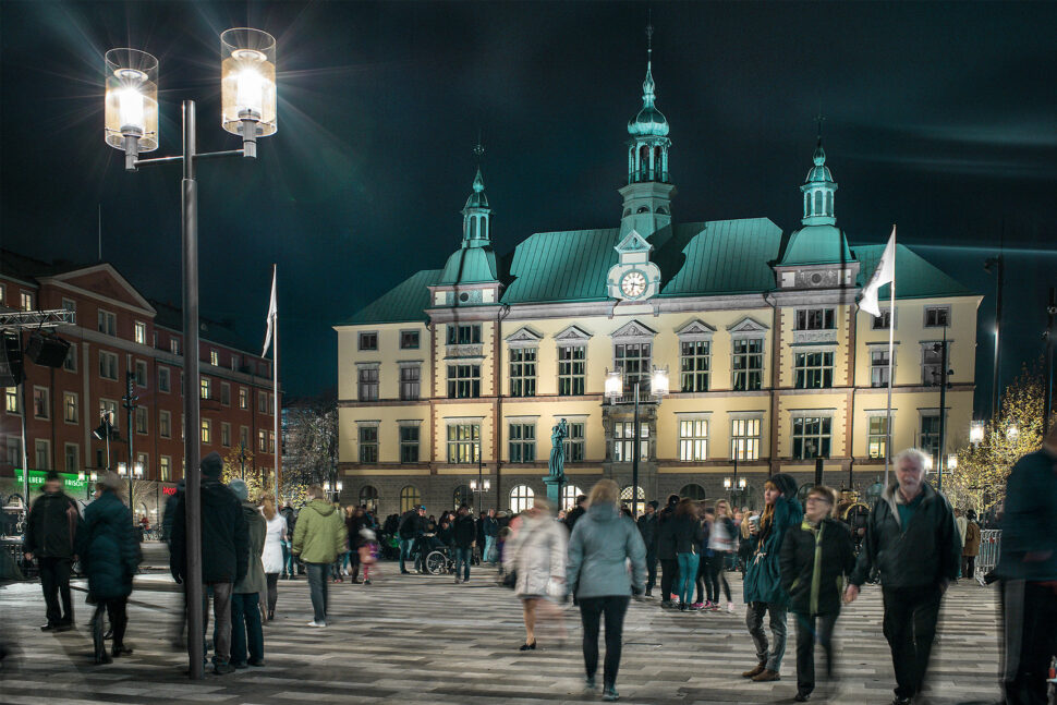 För ett par årtionden sedan var Fristadstorget en av Sveriges farligaste platser på helgerna. Sedan dess har kommunen satsat stenhårt på högskola, kommunikationer och en allmän upprustning av staden. Fristadstorget har förvandlats till en evenemangsplats och samlingspunkt för invånarna, och när den nya belysningen invigs är minnena av fyllorna, bråket och skumrasket kring fontänen ”Arbetets ära och glädje” som bortblåsta.