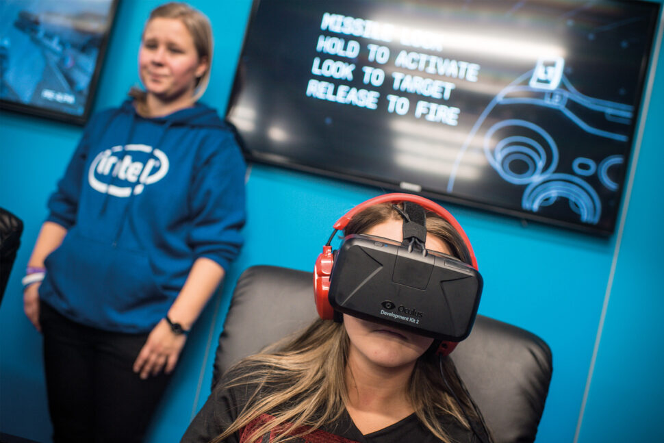 Dreamhack fokuserar mycket på dataspel, och en del har redan satt igång att spela. En våning upp ligger mässområdet med utställare av olika slag – från Stiftelsen Friends till Försvarsmakten, och företag som vill visa upp sina senaste gaming-prylar. En tredje mässhall är sovsal för de som övernattar på Dreamhack, som håller på ända till söndag morgon.