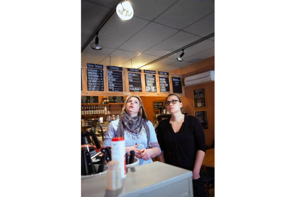 – Det här är jättekul. Fantastiskt att vi kan se hur det kommer att bli på det här viset, säger Jenny Mäkinen, en av ägarna till kafé Bullen och Bönan. Hon tycker att det har varit väldigt intressant att arbeta med en professionell belysningsplanerare i ett relativt litet ombyggnadsprojekt som det på kaféet.