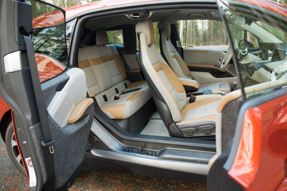 Jämfört med E-Golf och Kia Soul har också i3 en stor nackdel då den bara har plats för fyra personer. Mittplatsen i baksätet har istället avsatts för dryckeshållare. Det kan tyckas lite onödigt då bilens kupéutrymme är stort nog att rymma fem sittplatser.