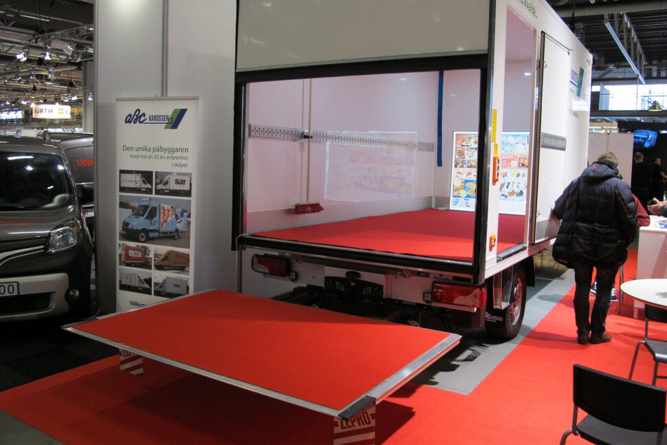 En annan påbyggare är ABC Karossen i Mönsterås som ställde ut ett helt nytt skåp på mässan. Mer volym och mer last var budskapet. Dessutom, som alltid, erbjuder företaget kundanpassade lösningar för isolerade skåp. Bland kunderna syns Hemglassbilarna.