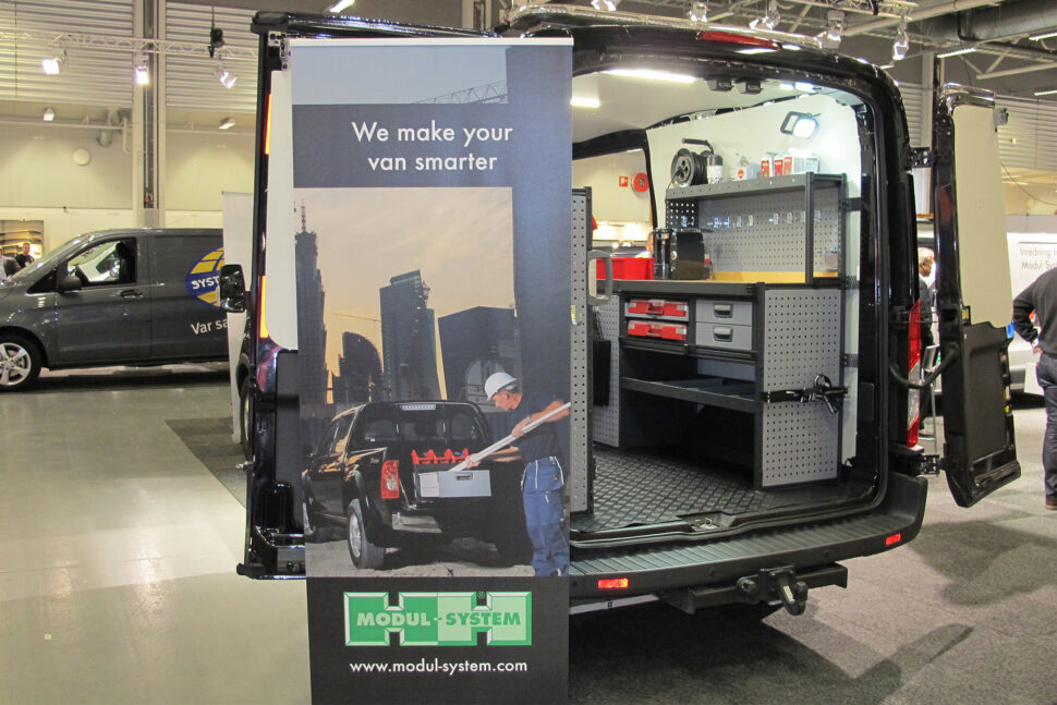 En av de tyngre när det gäller utrustning och bilinredning är System Edström som premiärvisade sitt nya dubbelgolv. Dubbelgolvet ger en möjlighet att ha ordning och reda på prylar och ändå ha ett rejält lastutrymme kvar – ovanpå. System Edström har under en längre tid utvecklat ett nytt system för de populära dubbelgolven i mindre transportbilar.