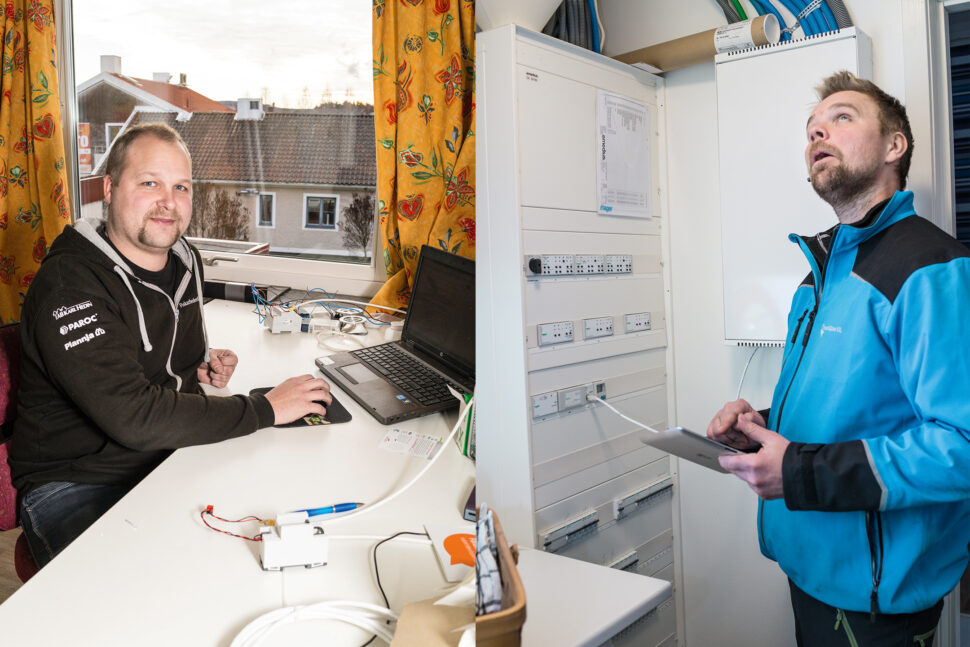 – Vi kommer in ganska tidigt i bilden när Fiskarhedens husagent i Mora bundit upp en ny kund. Då sätter vi oss ner med kunden och går igenom vad som kan göras utöver det baspaket för elinstallationen som följer med huset, berättar Tomas Hanser. Tomas brukar använda sin iPad för att demonstrera hur mycket som går att styra i ett smart hem och tillsammans med Christer argumenterar han kring vinsterna energimässigt med modern fastighetsautomation.