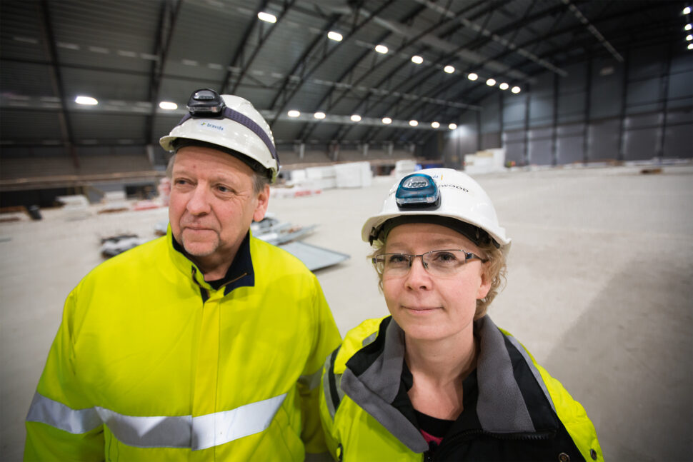 – Någon gång framåt våren startar produktionen av snö till skidhallen. Den görs med en mobil snöanläggning och nedkylningen samt snötillverkningen tar flera månader i anspråk. Sista juni ska den första skidåkaren kunna ge sig ut i spåret, förklarar Helena. Varannan vecka går Bravida igenom tidplanen med byggaren – och så här långt håller den.