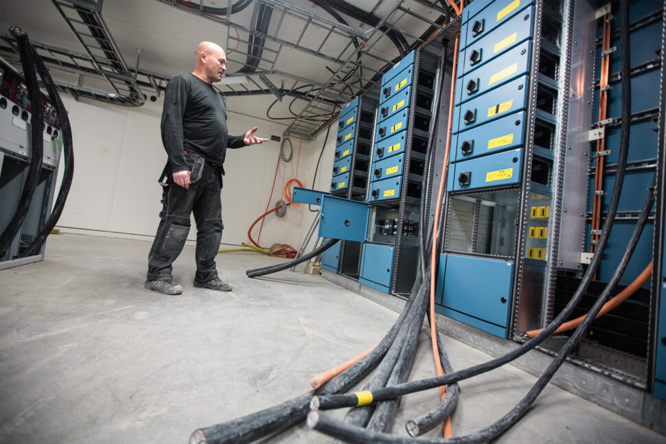 – Här finns 65 centraler och 21 apparatskåp runtom i huset, berättar Ingemar Johansson. Han förklarar att all kraftfördelning sker med kabel.