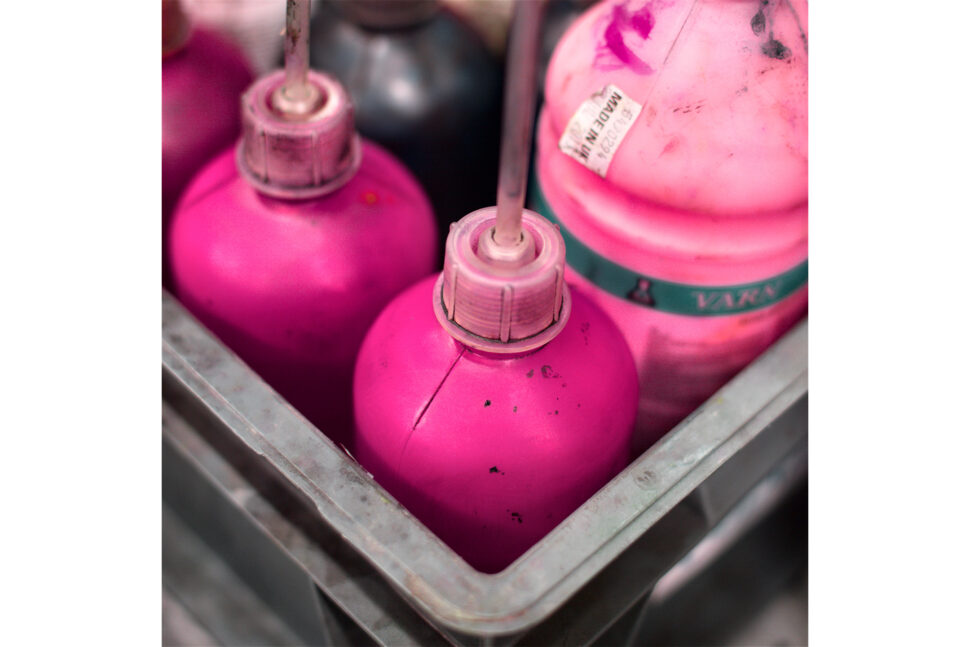 Klockan har blivit fyra på eftermiddagen, och vi går bort till en arkpress, som trycker direkt på pappersark istället för papper från rulle. Vi bjuds på kaffe och bullar medan omslagen till årets första nummer av Elinstallatören spottas ut i rasande fart. Hela 25 000 exemplar ska det bli, vilket är nytt rekord.