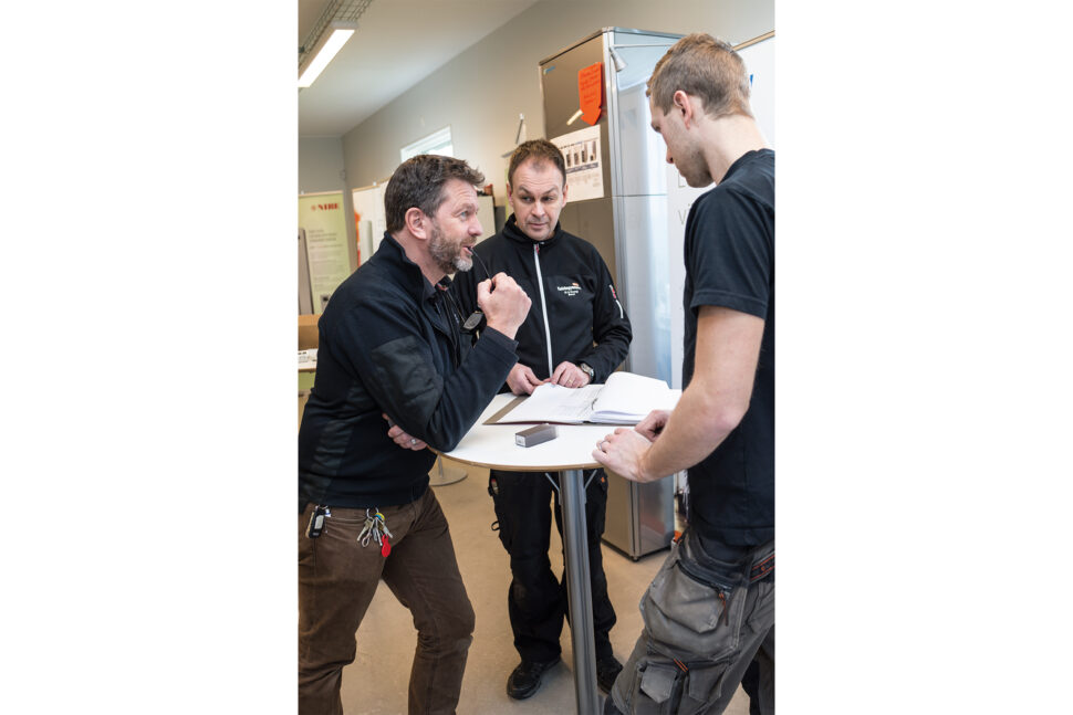 – Efter väggen är det ytterligare två installationsuppgifter som ska genomföras – en motorstyrning och en trappljusinstallation. Och så ska Erik klara att hitta minst fem av tio fel i en felsökningsövning, förklarar Bernt Lahtinen. Som det inte är nog har Bernt också anmält sin elev till ECY Cup, främst för att han ska få göra det elsäkerhetsprov som ingår i Cup-en.