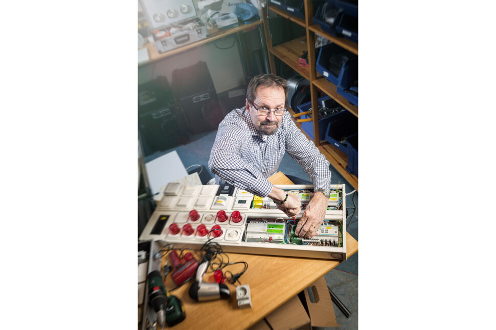 När Elinstallatören träffar Nisse Karlsson på hans tjänsterum hos EUU i Nyköping infinner sig snabbt en känsla av att här inne huserar en verklig tekniknörd. Prylar högt och lågt – från trådlösa system för överföring av elenergi till ljusplattor för demonstration av RGB-ljus, KNX-styrningar, halvbyggda demoväskor för DALI-system och allt vad det nu är.