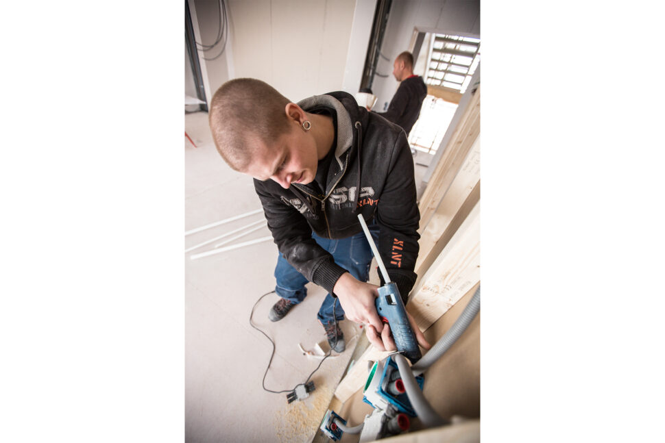 En svårighet som Patrik Westerdahl och hans montörer stött på har varit åtkomligheten i väggarna. Det är många gipsskivor i väggelementen som fått demonteras för att elinstallationen ska kunna genomföras. Patrik har haft många möten med Derome-folket för att återföra erfarenheter från arbetet med elinstallationen. Det här är ett projekt som präglats av ständigt lärande.