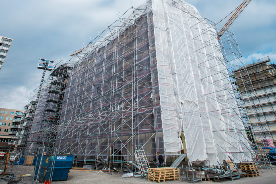 – För byggets installatörer har tältet varit en klar fördel. Vi har kunnat gå på tidigt i projektet och jobba oss nerifrån och upp, berättar Patrik Westerdahl. Hans företag El & Energientreprenad har svarat för installationen av el och tele.