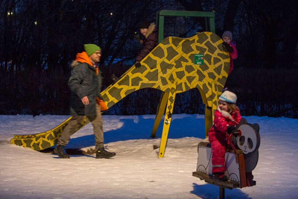 Två veckor efter att den nya belysningen i Giraffparken invigts tillbringade barnen 27 minuter mer tid utomhus varje dag. Mer än hälften av föräldrarna i undersökningen svarade att den ökade uteleken bidrog till att barnen fick bättre humör. Dessutom minskade den tid som barnen i fokusgruppen spenderade framför dator- eller tv-spel med 15 procent.
