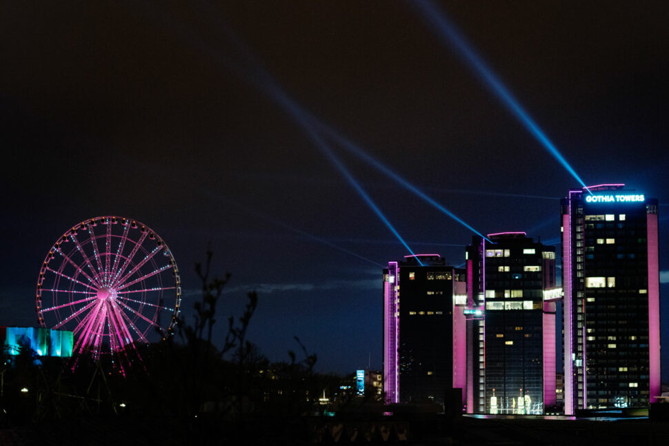 – Svenska Mässan vill ju inte konkurrera med Liseberg på andra sidan gatan om Göteborgares och turister uppmärksamhet, säger Christer Djerf. Han kan dock konstatera att det är många kringboende som gillar det nya ljuset på hotellet.