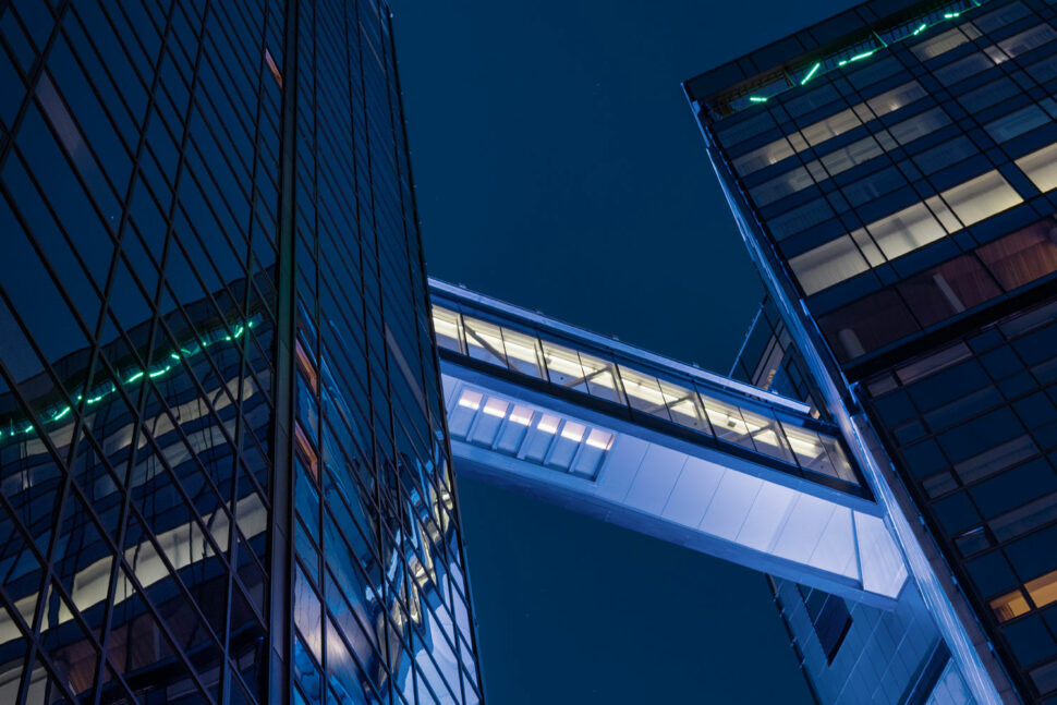 LED-profiler har också installerats längs de båda broar som förbinder de tre tornen med varandra, liksom ovanför dörrarna till hotellsviterna i “Upper House” – mittentornets översta åtta våningar.