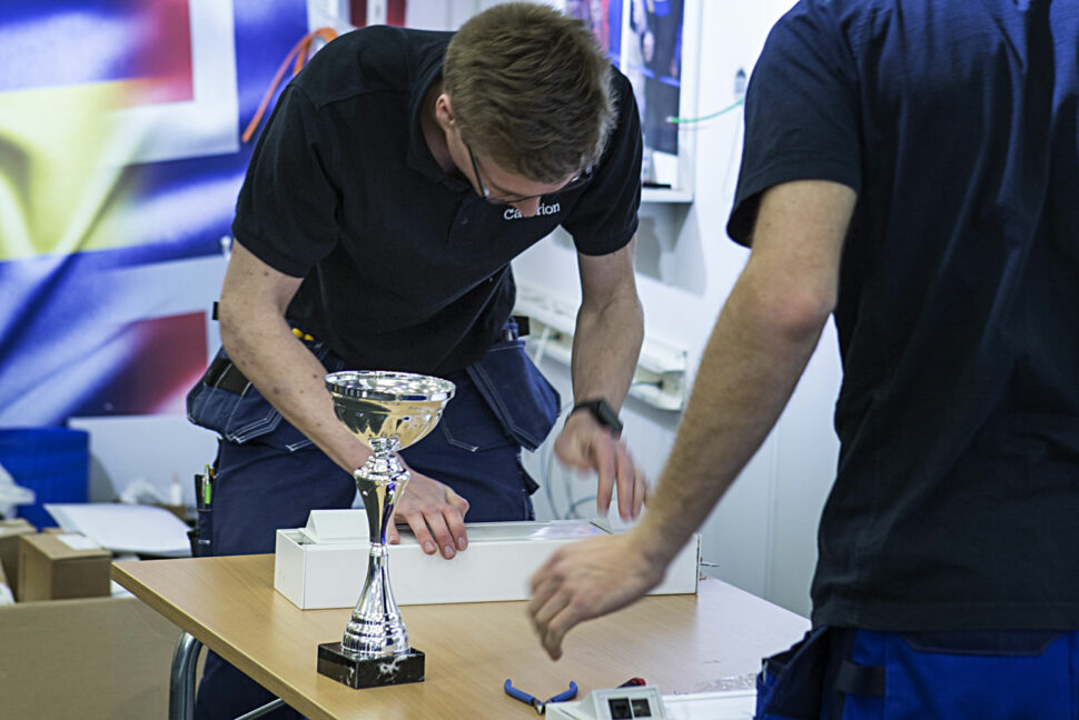 Det var efter prisutdelningen som Yrkeslandslagets monter lämnades obevakad en kort stund som vandringspokalen vandrade iväg. Priset stod på ett bord och när monterpersonalen kom tillbaka så var den borta.
