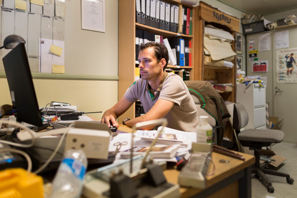 Klockan börjar närma sig tre på eftermiddagen. Jimmy har hunnit lagat ett lås till en av campingstugorna, fixat ett värdeskåp som gått i baklås på badanläggningen och guidat oss genom hela Furuviksparken. Om inget oförutsett händer slutar han om en timme.