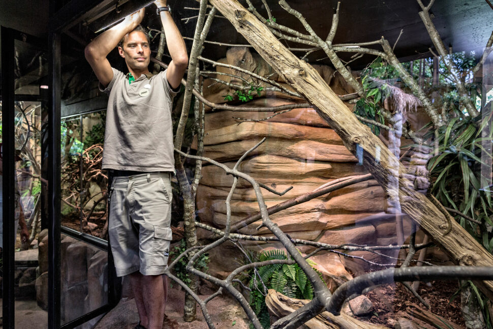 – Det är kul och varierande. Jag gör allt från att projektera utbyggnader till att byta lampor inne hos reptilerna, förklarar Jimmy.