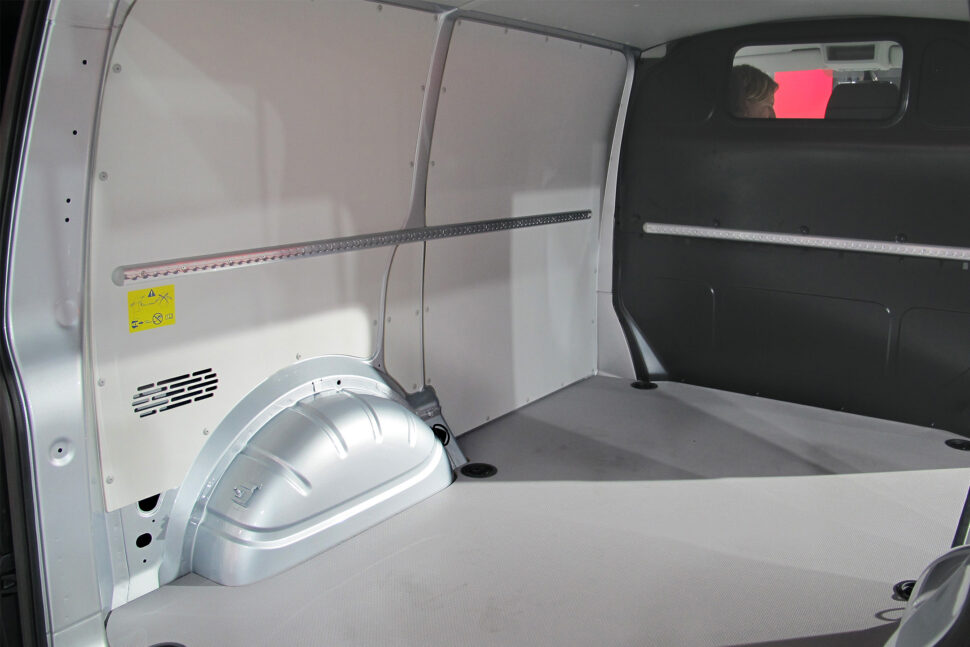 En skjutdörr – på höger sida är standard och öppnar 102 cm – som tidigare. Takhängd baklucka är standard och här kommer en nyhet – den går att få med elmanövrerad öppning och stängning. Ändå är dubbla bakdörrar ofta att föredra och de går då att välja till.