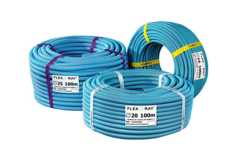 Franska företaget Rayponse är ett av de företag som utvecklat flexrör för elinstallationer som skärmar av den elektromagnetiska strålningen. Rören har två skikt som båda är skärmande – det inre utgörs av kolpulver och det yttre av ett blåfärgat plastmaterial som också är halogenfritt. De två skikten, kombinerat med en extra halvledande tråd som ska anslutas till jord, ger en effektiv avskärmning av det elektromagnetiska fältet.