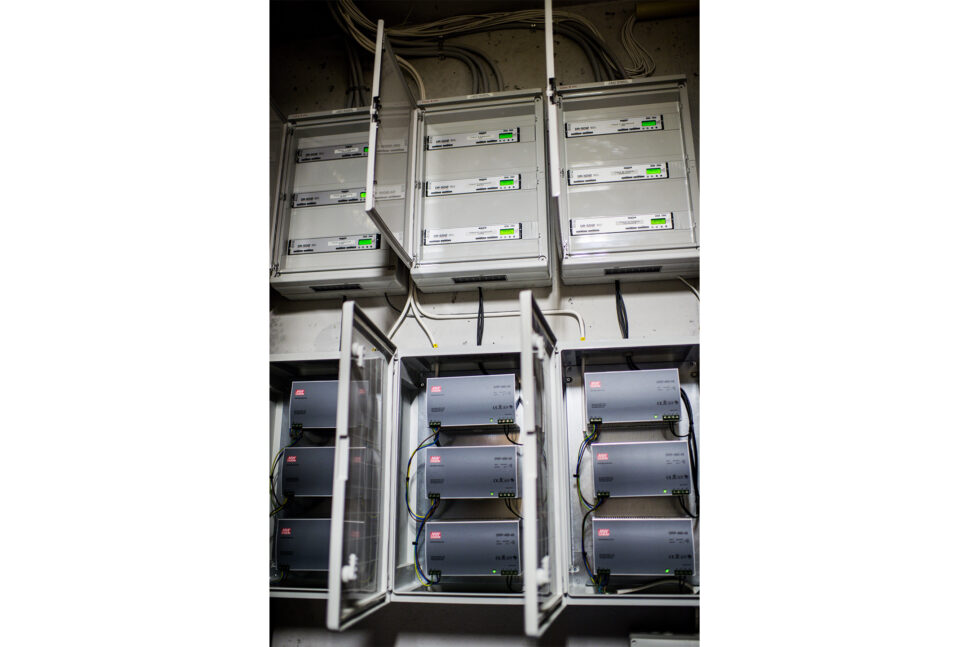 Konserveringsteknikern Ove Olsen förklarar också att det inte finns någon starkström inne i skeppet. Både av estetiska skäl och på grund av brandrisken. Istället samlas alla kablar vid en punkt i mitten och går ner till ett rum i källaren där el- och dimmerskåpen sitter. Av säkerhetsskäl slås dessutom all el i huset av när ingen är på plats, med undantag för det centrala styrsystemet.