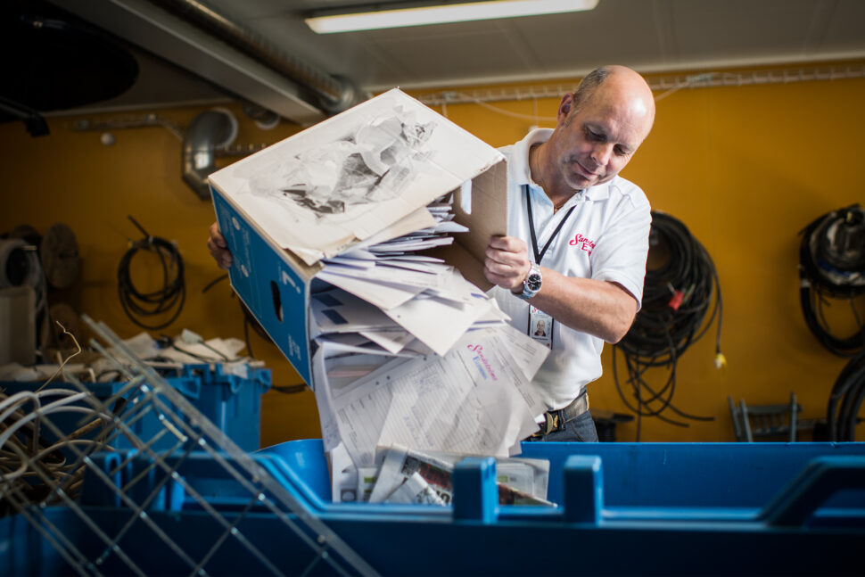 Miljöhantering är ett annat område där Sandströms dragit ner kostnaderna rejält på senare tid. På företaget finns numera rejäla utrymmen för sopsortering. Betalningen för metall och kabelskrot, kontorspapper, wellpapp och genomskinlig plast täcker idag företagets kostnader för det brännbara avfallet, för tömning av kärl och containrar.