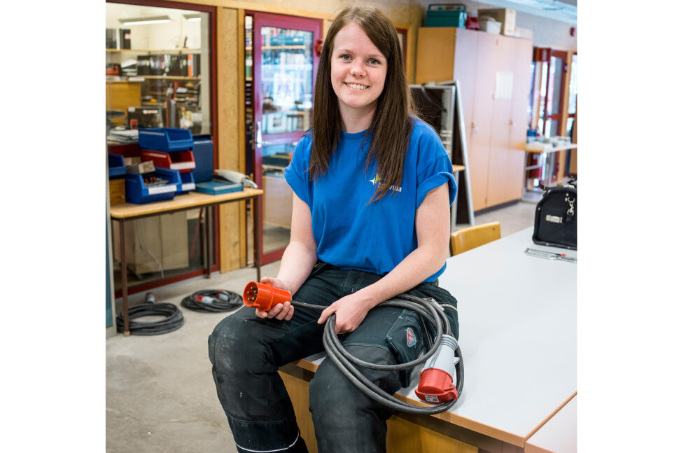 – Vi hade en kurs om arbetsmiljö och säkerhet och skulle bland annat skruva ihop skarvkablar. Jag tyckte det var så kul att jag bad att få byta linje och börja om från början på elprogrammet, berättar Stina.