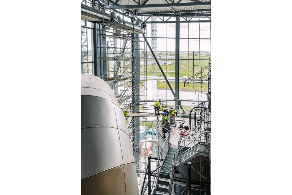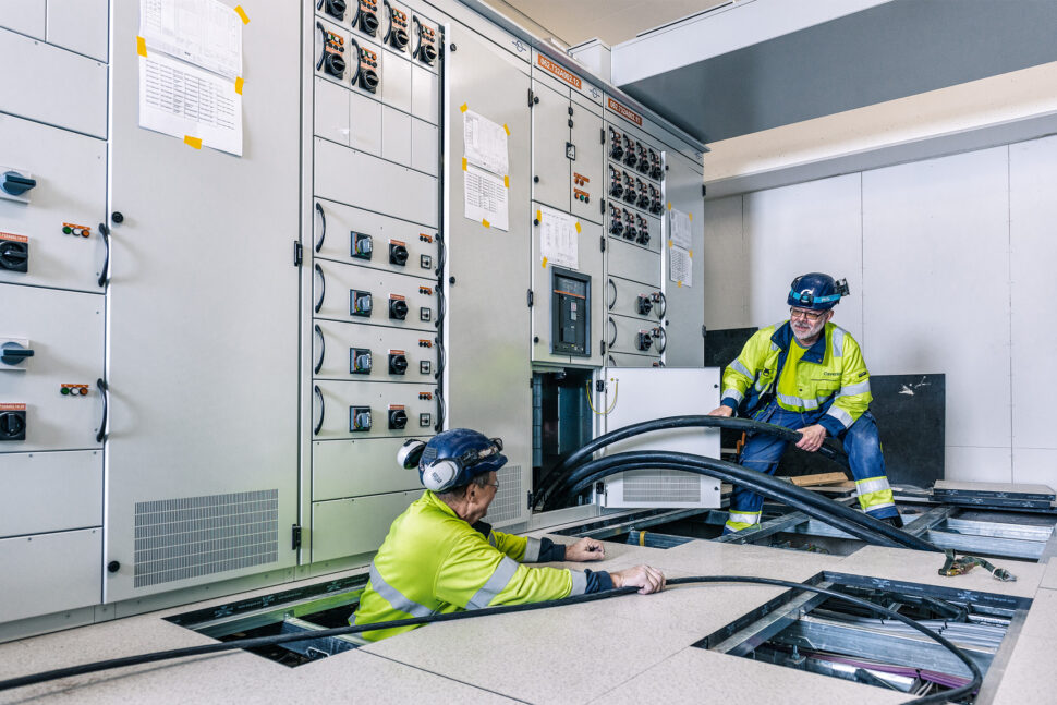Även om Caverion har ansvar för kraft och belysning i byggnaden är det ett tyskt företag som sköter elinstallationerna i anslutning till själva pannan. Det innebär en del logistiskt trassel och ett visst mått av diplomati för att alla ska kunna utföra sina uppdrag i tid.