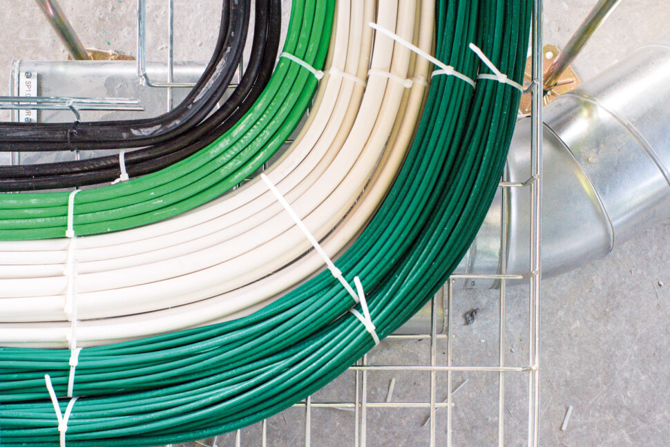 – Och så har vi många brandavskiljande väggar som vi fått täta med Roxtec-genomföringar. Det har varit kämpigt ibland, särskilt när utrymmena varit trånga, tillägger ledande montören Mattias Svensson.