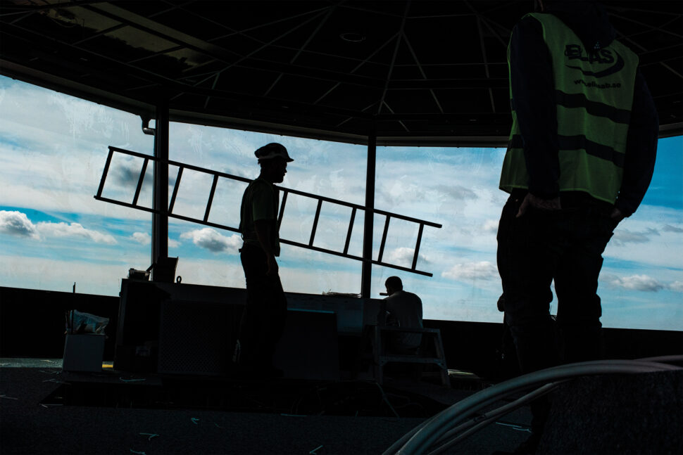 Här är väldigt tekniktätt och på många ställen snålt om utrymmen. Det har också ställts väldigt höga krav på renhållningen – för att inte störa flygverksamheten. Alla har vi hjälpts åt med att städa efter oss.