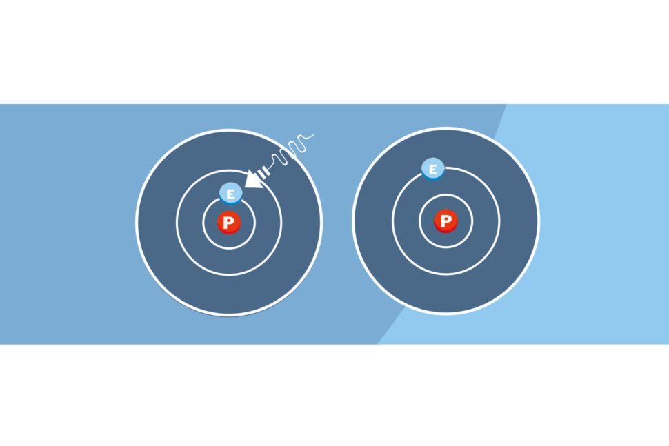 Danske fysikern Niels Bohr föreslog 1913 den modell av väteatomen som förklarar principen för hur en solcell kan generera elektrisk spänning. Han fastslog att ljus kunde påverka vätemolekylens enda elektron. Det Bohr fann var att om en ljuspartikel – en ’foton’ – träffar väteatomens elektron så absorberar den fotonens energi och flyttar ut till en elektronbana som ligger på längre avstånd från kärnan. Att elektronen flyttat sig beror på att den fått en högre elektrisk laddning än tidigare. Varje elektronbana kräver sin egen förutbestämda laddning som matchar den attraherande kraften från atomkärnan. Om elektronen sedan skulle flytta tillbaka till en lägre bana kommer den att istället avge sin överskottsenergi – i form av en foton.