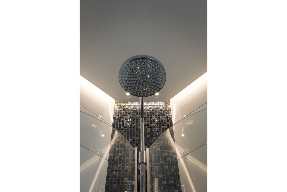 I husets toalettrum tänds LED-lamporna alltid med 31 procents effekt och dimmras sedan upp till mer ljus om så önskas. Strykjärnsuttaget i tvättstugan har LED-ljus i ramen så att det syns om uttaget är strömsatt eller ej.