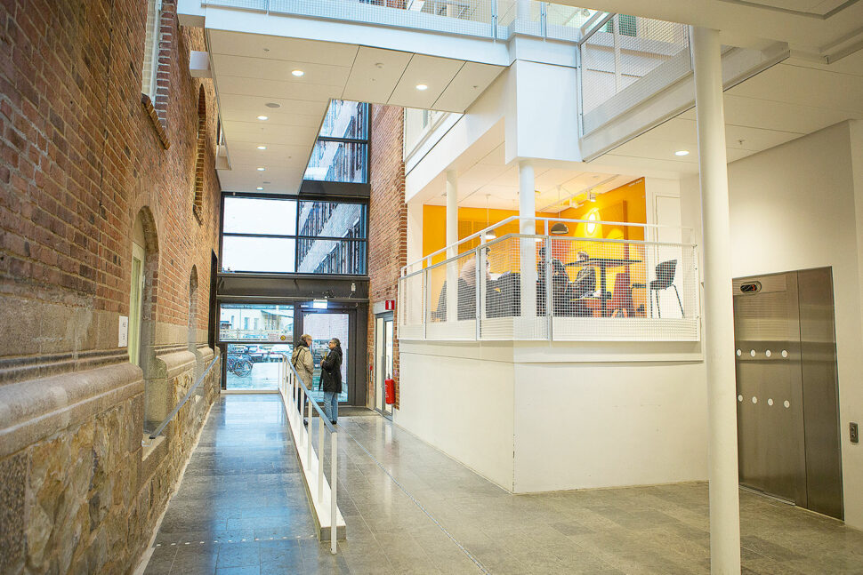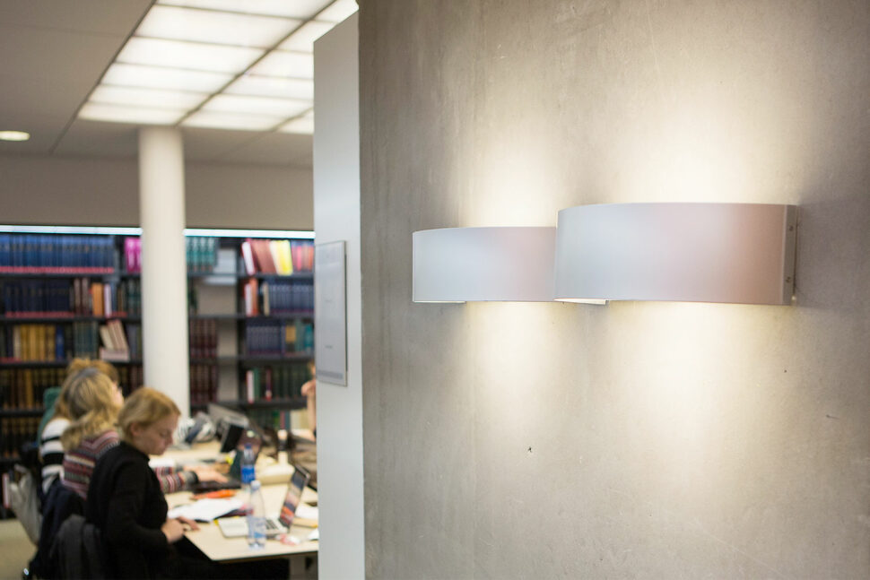 ”Möten mellan människor” är ett viktigt tema i ljussättningen. Därför har det skapats läsytor på flera ställen i huset – bland annat på avsatser i trapphusen. Där kommer ljuset från pendlade armaturer över borden, ett varmt ljus som ska locka folk att slå sig ner och mötas runt borden.