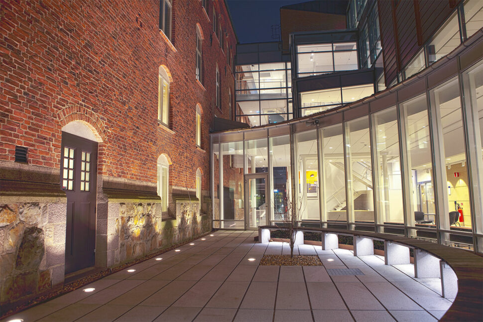 Arkitekten hade fått i uppdrag att skapa ett bättre flöde mellan husen och bygga på dem med en tredje byggnad. Hur belysningslösningarna skulle se ut hade kunden inte så klar uppfattning om, men att det fanns ett stort intresse kring belysningen var glasklart redan från början. I ett tidigt skede bestämdes att huset skulle ses som tre olika delar – ur gestaltningsperspektiv.