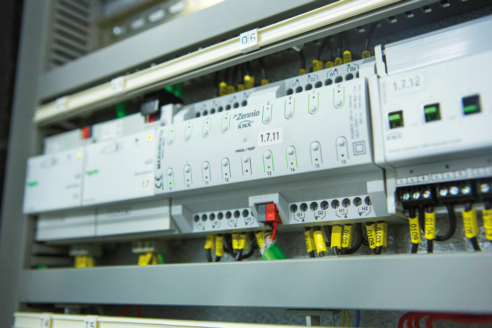 – Annars är det här inte någon särskilt stor eller komplicerad KNX-anläggning, men den visar på det faktum att du kan komma väldigt långt med lösningar som inte är så krångliga. När kunden här tittar på sin energiförbrukning är han väldigt nöjd. Det är inte bara KNX-systemets förtjänst – fastighetschefen Håkan Winbrand lägger ner mycket jobb på energiuppföljning, men tack vare KNX har han tillgång till realtidsdata om förbrukningen, understryker Per Svensson. Det har lagts ner en hel del arbete på analyser och uppföljningar av energidata.