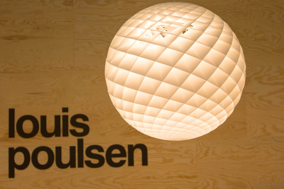 I en annan monter finns anrika Louis Poulsen. Företaget erbjuder numera mer energisnåla led-versioner av sina klassiska designikoner. PH Kotte har exempelvis en specialkonstruerad led-insats på 96 watt som kan ersätta en 500 watts glödlampa. Konstruktionen var en stor utmaning, och den nya led-modulen har kraftiga kylflänsar, värmeledningsrör och diffuserande avskärmning. Allt för att skapa en stark punktformig ljuskälla som sprider ljus i alla riktningar.