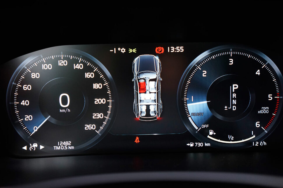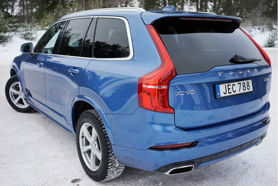 Vi testar bilen på snö- och isbelagda vägar i norra Sverige. Inte någon gång visar XC90 tecken på att tappa greppet eller dra iväg från körriktningen. För att verkligen sätta fyrhjulsdriften på prov stannar vi mitt i en snöig backe med hela 18 procents lutning. Men – inga problem att komma iväg.