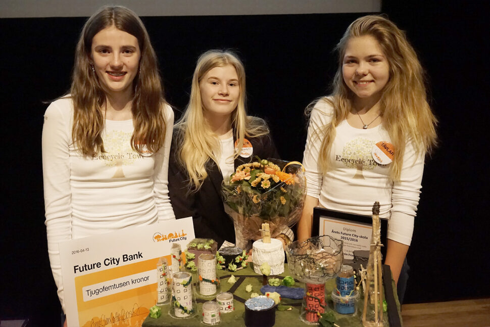 Och det var åttondeklassarna Julia Lönn, Mimmi Jonsson och Amanda Westerberg från Thorén Framtid i Växjö som kammade hem titeln Årets Future City-skola.