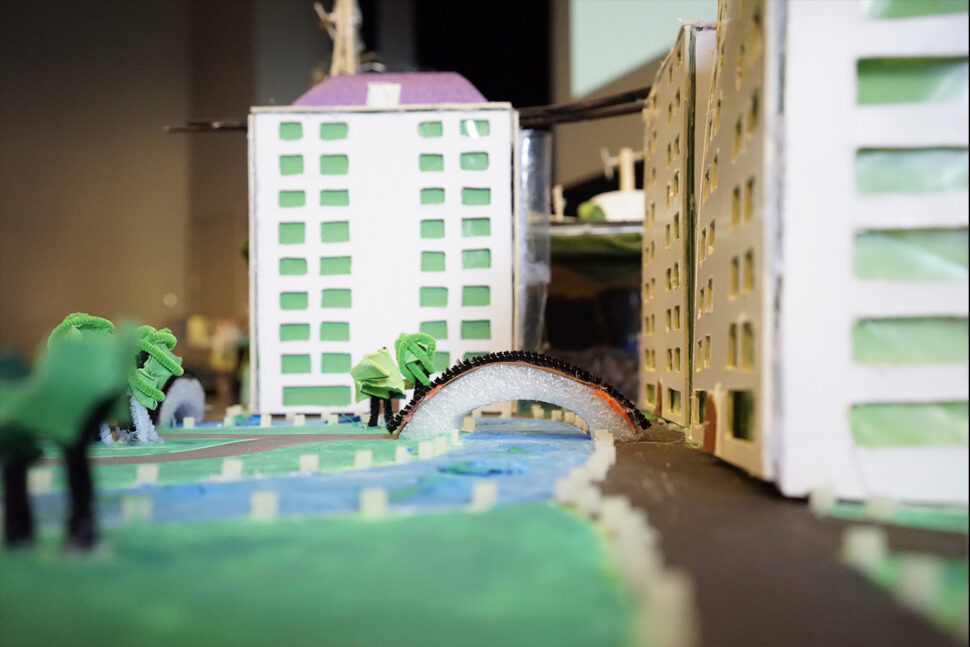 Tjejerna från Hagaskolan hade också byggt ett stort, svart höghus på sin modell: