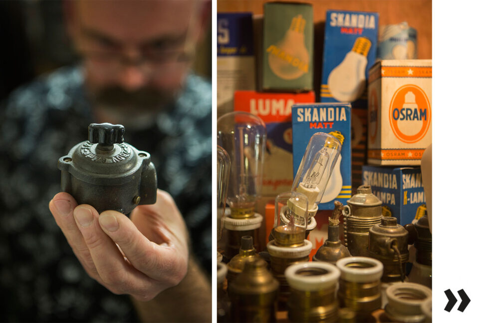 – En annan utmaning är att hitta uppgifter om de föremål som redan finns i samlingen. Jag har lagt ner massor av arbete genom åren på att identifiera olika föremål och söka fram data om dem. Här har gamla elgrossistkataloger på nätet varit till stor hjälp.